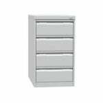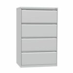 Cartoteca cu doua sectiuni pentru fisiere cu format A4 pentru fiecare sertar. Constructie din tabla de otel si vopsita cu pulbere, sistem de blocare care impiecdica deschiderea simultana a mai multor sertare.