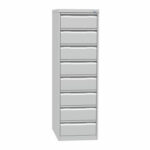 Cartoteca pentru fisiere cu format A5. Constructie din tabla de otel si vopsita cu pulbere, sistem de blocare care impiecdica deschiderea simultana a mai multor sertare.